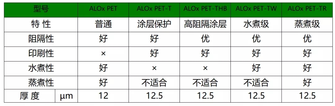 為滿足客戶不同產品需求,威孚特推出以下五個品種的氧化鋁PET膜: